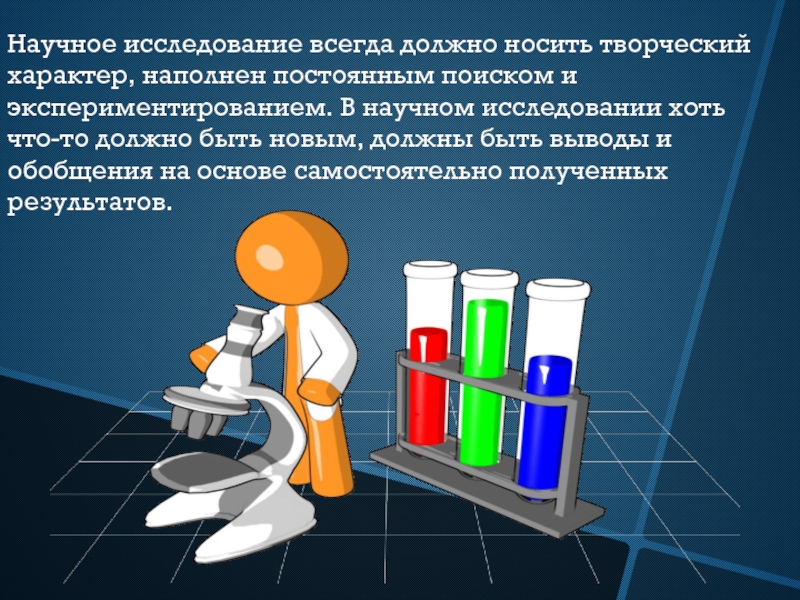 Слайд 3Научное исследование всегда должно носить творческий характер, наполнен постоянным поиском