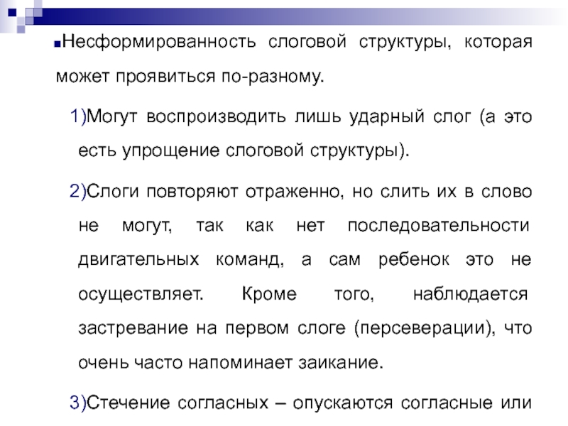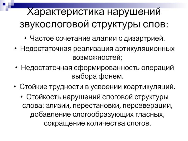 выраженные нарушения слоговой структуры слов и их звуконаполняемость