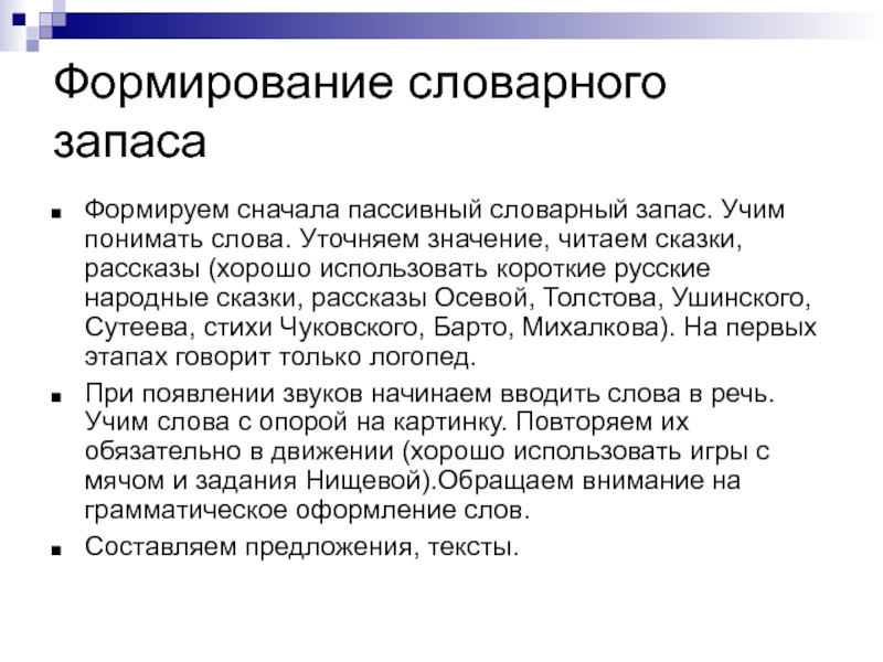 Слайд 64Формирование словарного запаса