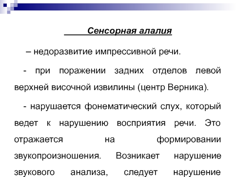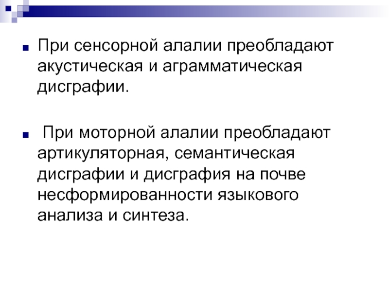 Слайд 69При сенсорной алалии преобладают акустическая и аграмматическая дисграфии.
