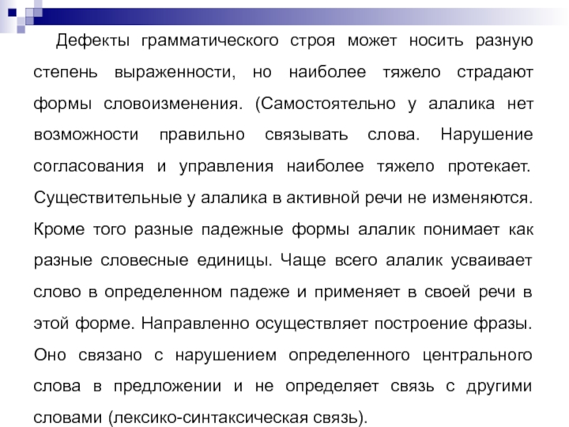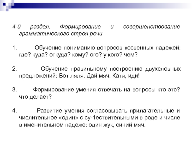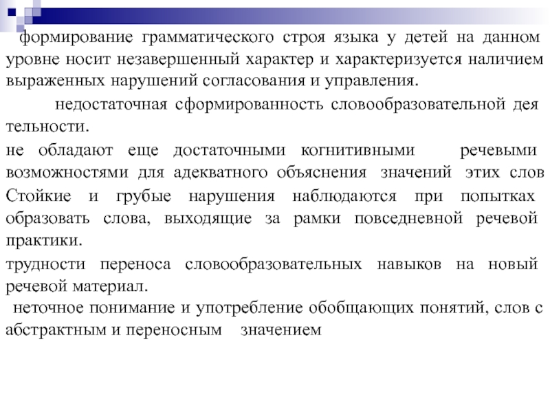 Слайд 11формирование грамматического строя языка у детей на данном уровне носит