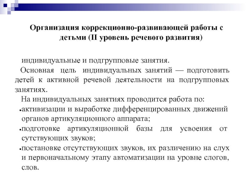 Слайд 7Организация коррекционно-развивающей работы с детьми (II уровень речевого развития)
