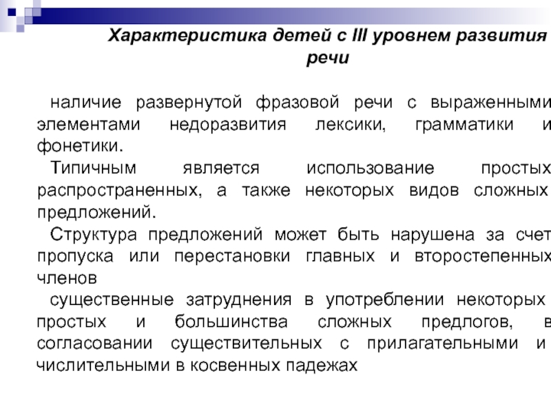 Слайд 10Характеристика детей с III уровнем развития речи