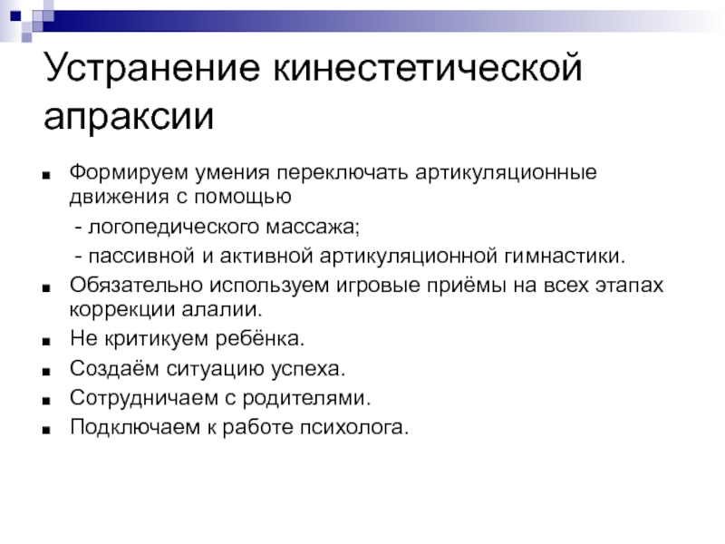 Слайд 61Устранение кинетической апраксии