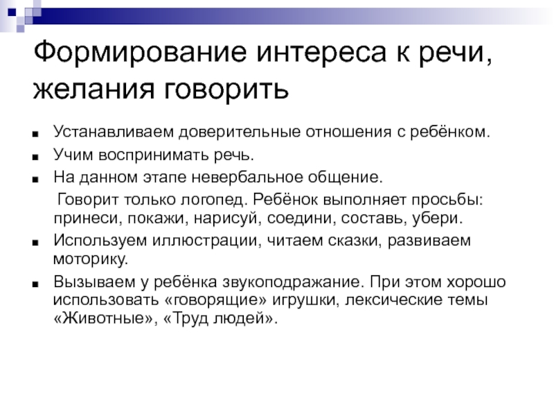 Слайд 63Формирование интереса к речи, желания говорить