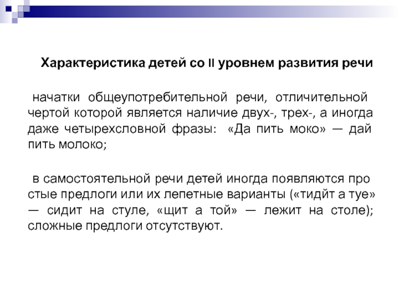 Характеристика детей со II уровнем развития речи