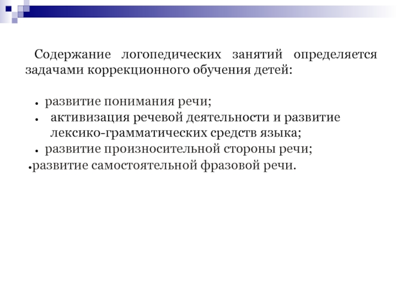 Содержание логопедических занятий определяется задачами коррекционного обучения детей: