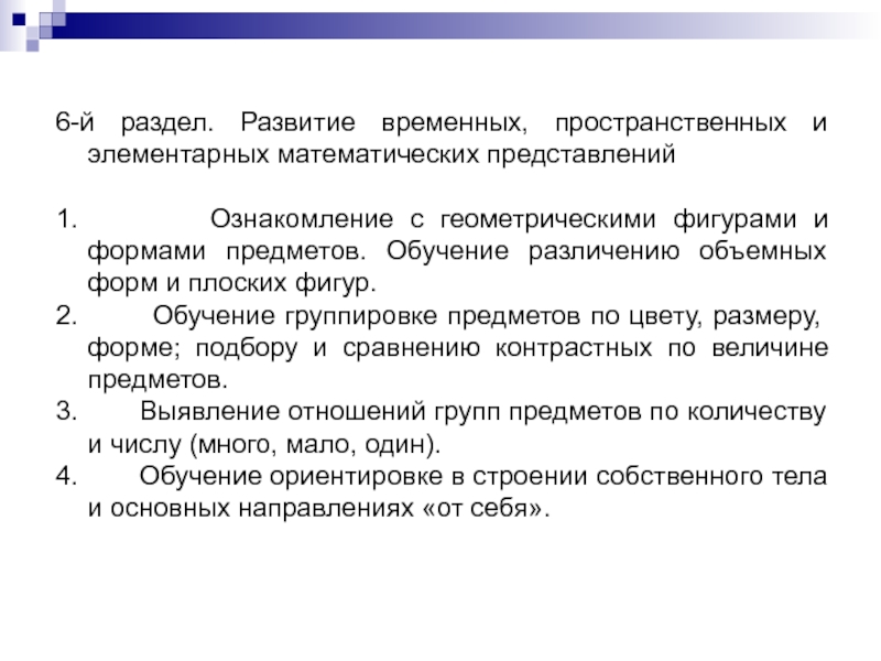 6-й раздел. Развитие временных, пространственных и элементарных математических представлений