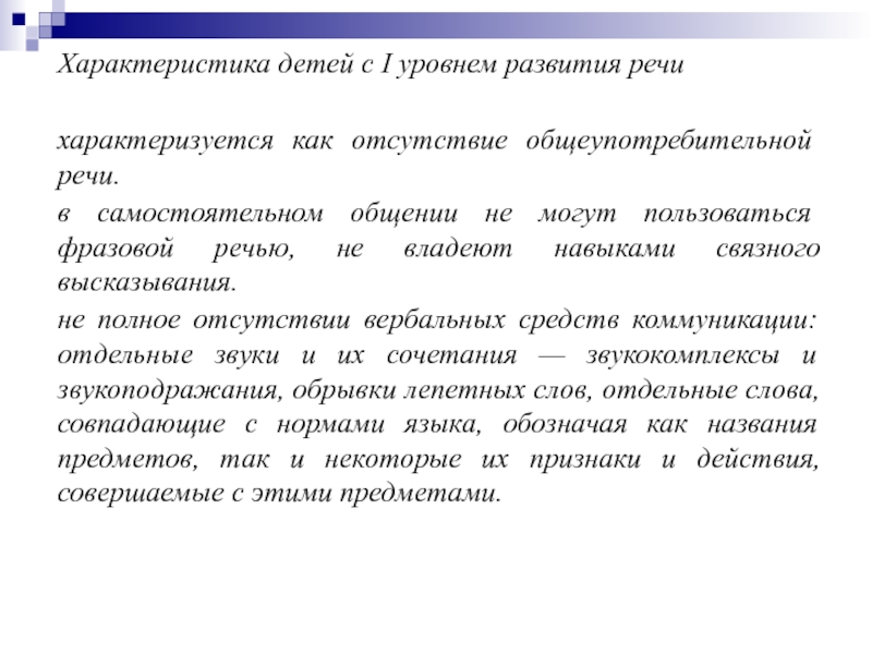Слайд 2Характеристика детей с I уровнем развития речи