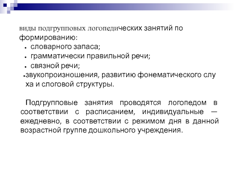 Слайд 9виды подгрупповых логопедических занятий по формированию:
