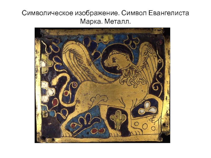 Слайд 33Символическое изображение. Символ Евангелиста Марка. Металл.