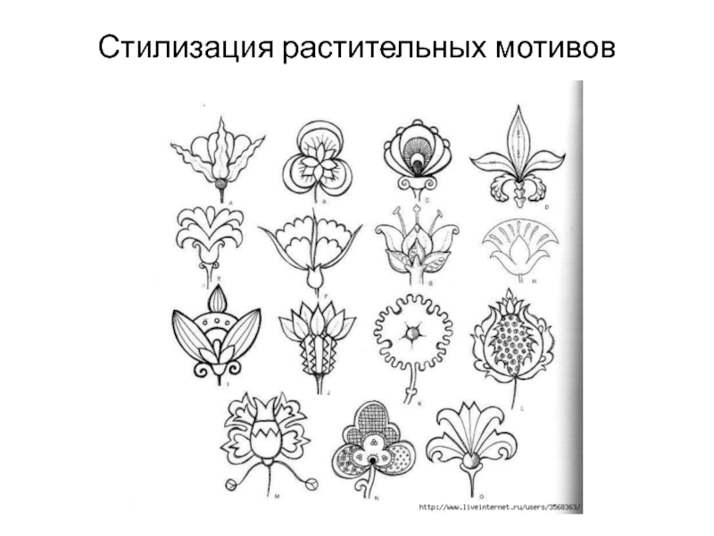 Слайд 41Стилизация (упрощение) растительных мотивов