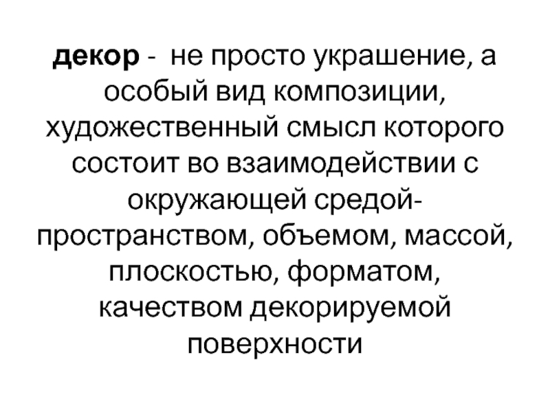 декор - не просто украшение, а особый вид композиции, художественный смысл которого состоит во взаимодействии с