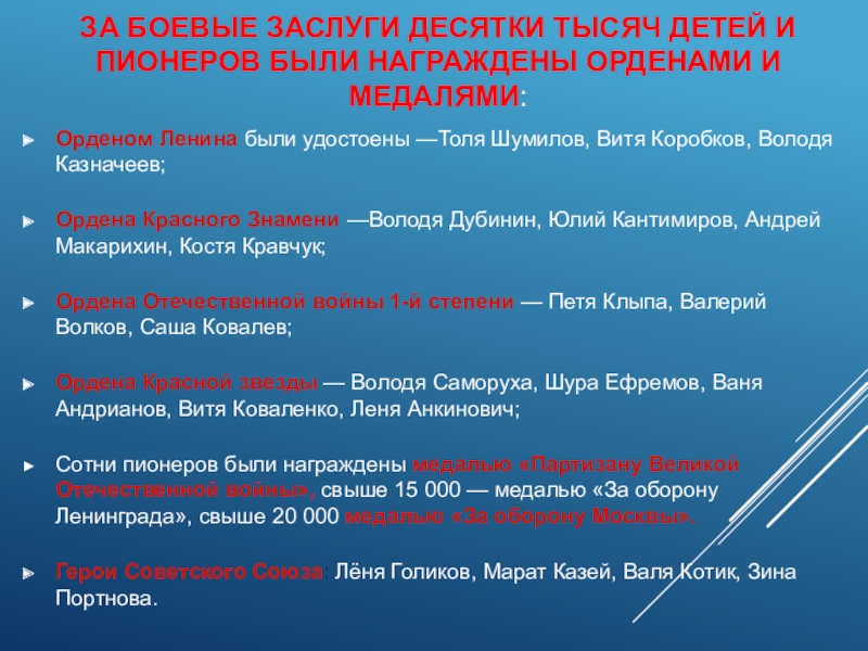 В Великой Отечественной Войне участвовало свыше 20 000 детей