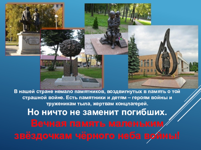 Многие дети в советском тылу трудились на заводах, заменяя ушедших на фронт взрослых, а также участвовали в гражданской обороне.