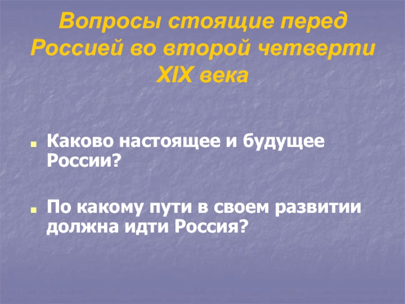 Слайд 5Вопросы стоящие перед Россией во второй четверти XIX века