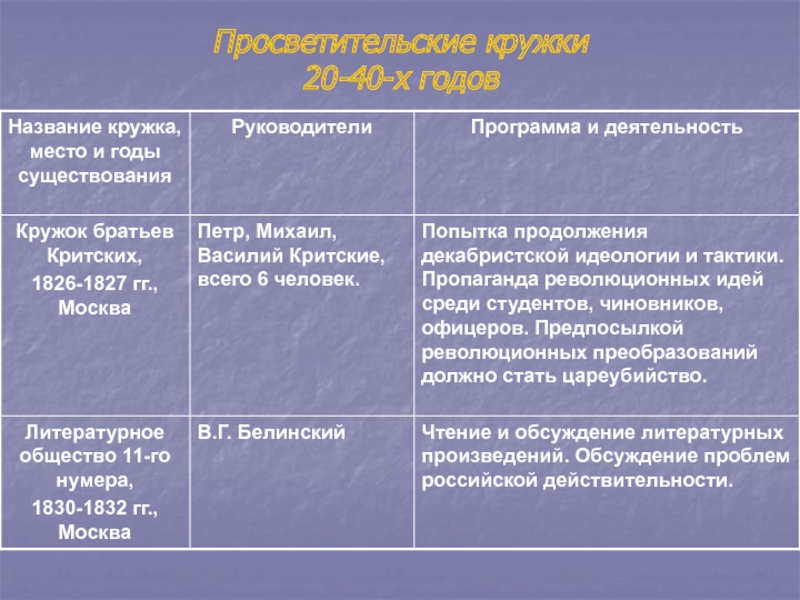 3. Кружки 20-40 - х гг. XIX века.