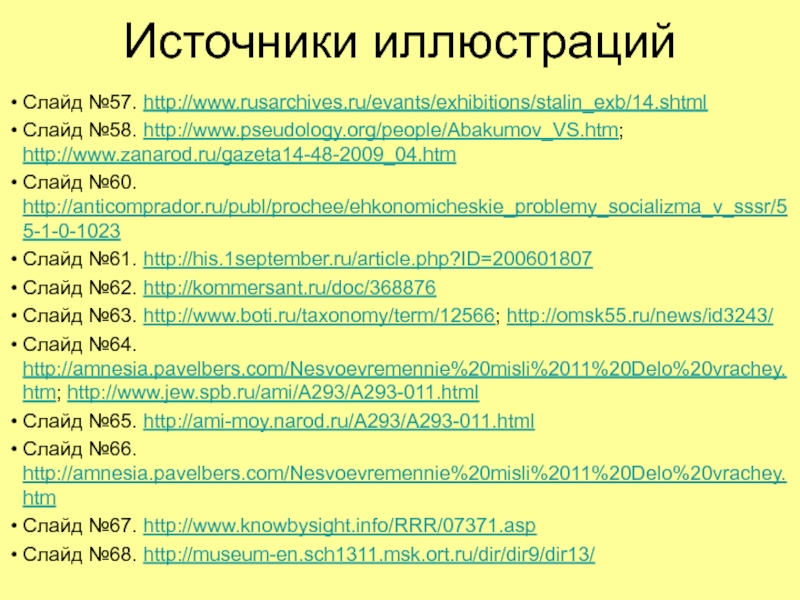 Слайд №58. http://www.pseudology.org/people/Abakumov_VS.htm; http://www.zanarod.ru/gazeta14-48-2009_04.htm