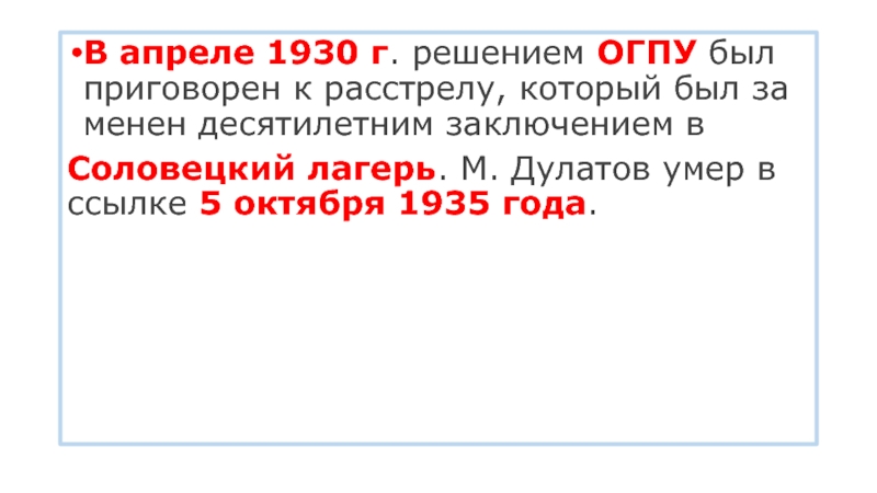 Слайд 6В апреле 1930 г. решением ОГПУ был приговорен к расстрелу,