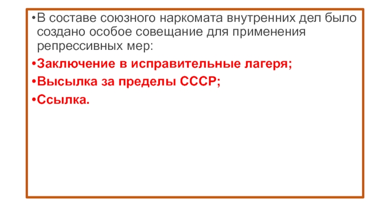 Слайд 3В составе союзного наркомата внутренних дел было создано особое совещание