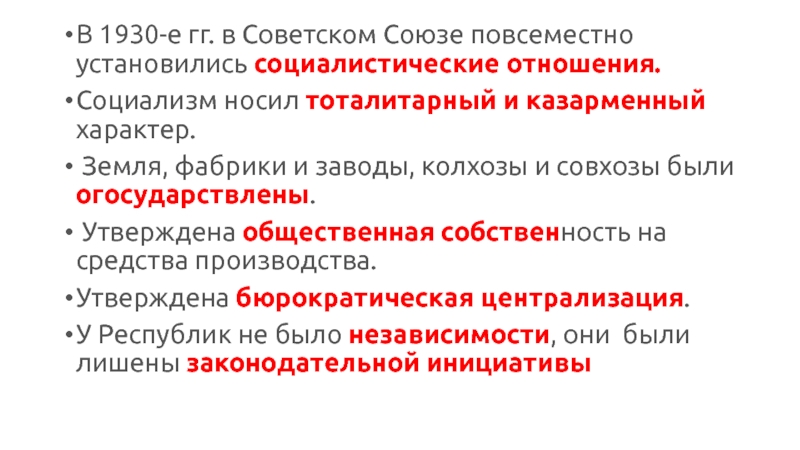Слайд 2В 1930-е гг. в Советском Союзе повсеместно установились социалистические отношения.