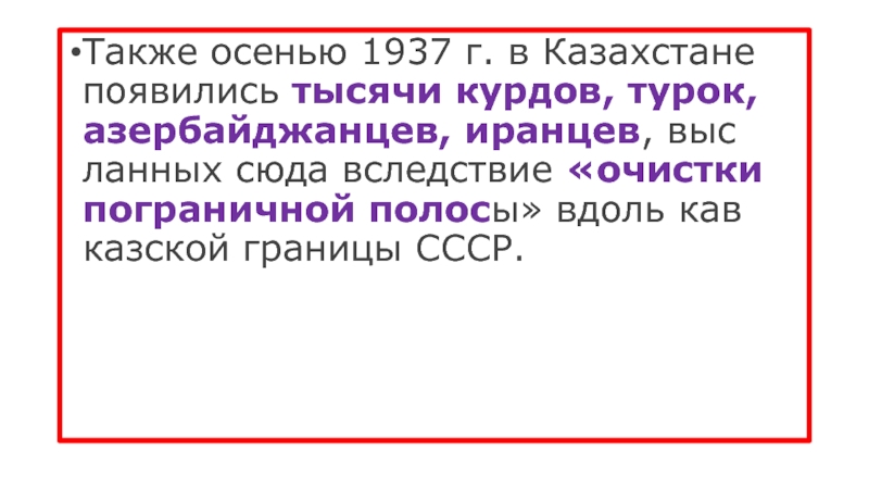 Слайд 10Также осенью 1937 г. в Казахстане появились тысячи курдов, турок,