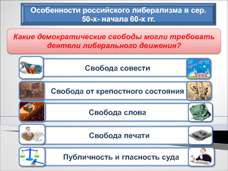 Слайд 8Особенности российского либерализма в сер. 50-х- начала 60-х гг.