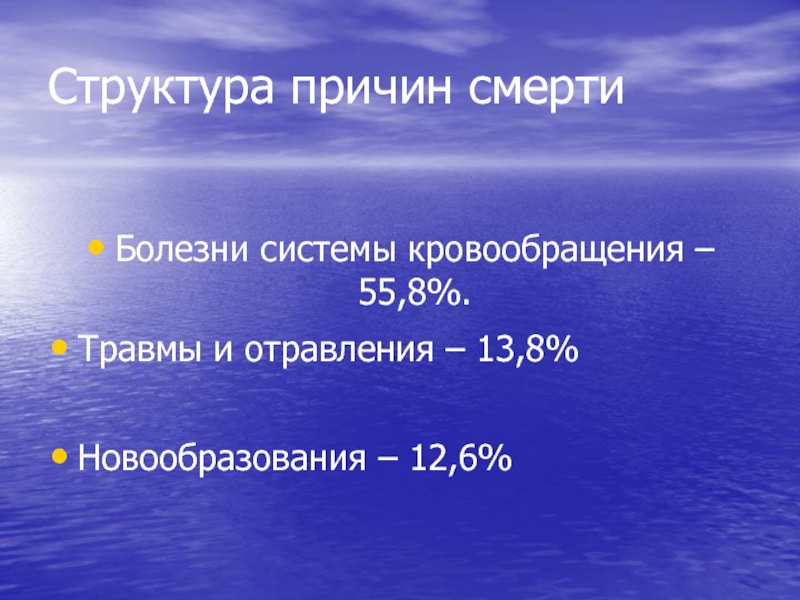 Слайд 38СТРУКТУРА ПРИЧИН СМЕРТНОСТИ НАСЕЛЕНИЯ