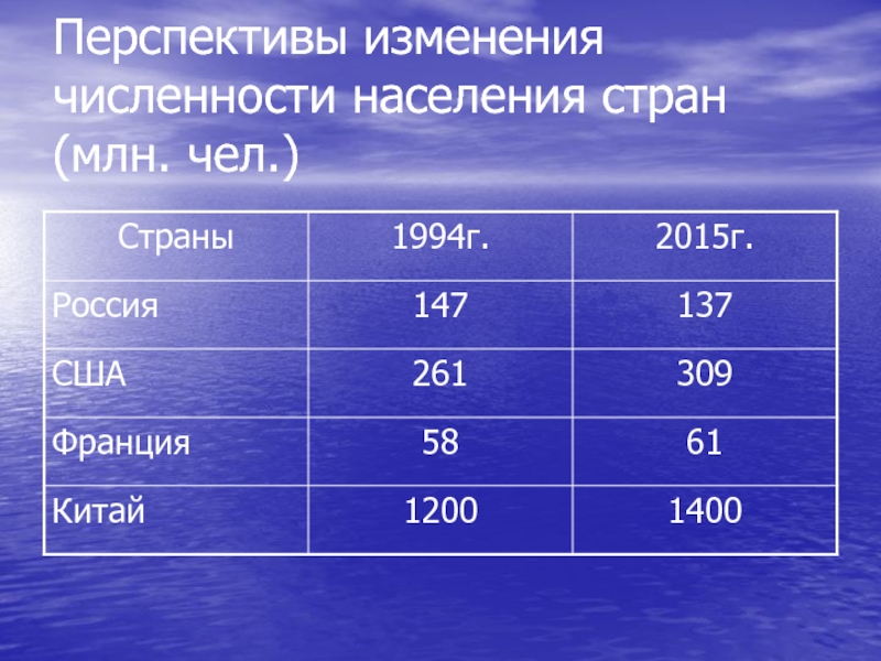 Слайд 44Перспективы изменения численности населения стран (млн. чел.)