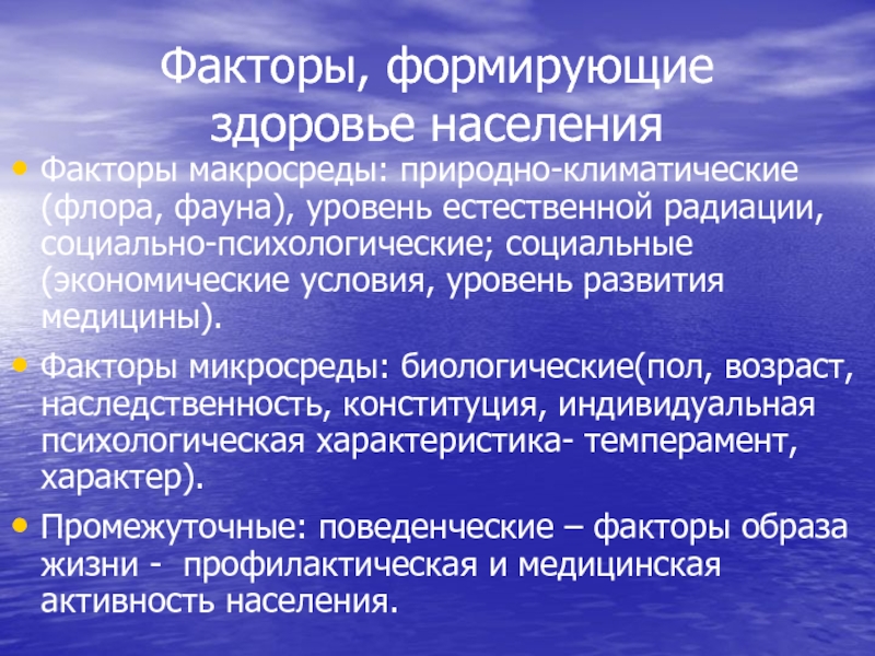 Факторы микросреды: биологические(пол, возраст, наследственность,