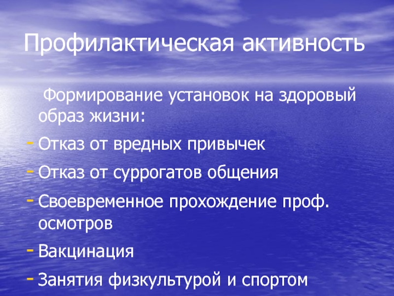 профилактику заболеваний и травм, увеличение продолжительности активной жизни и трудоспособности посредством объединения усилий общества.
