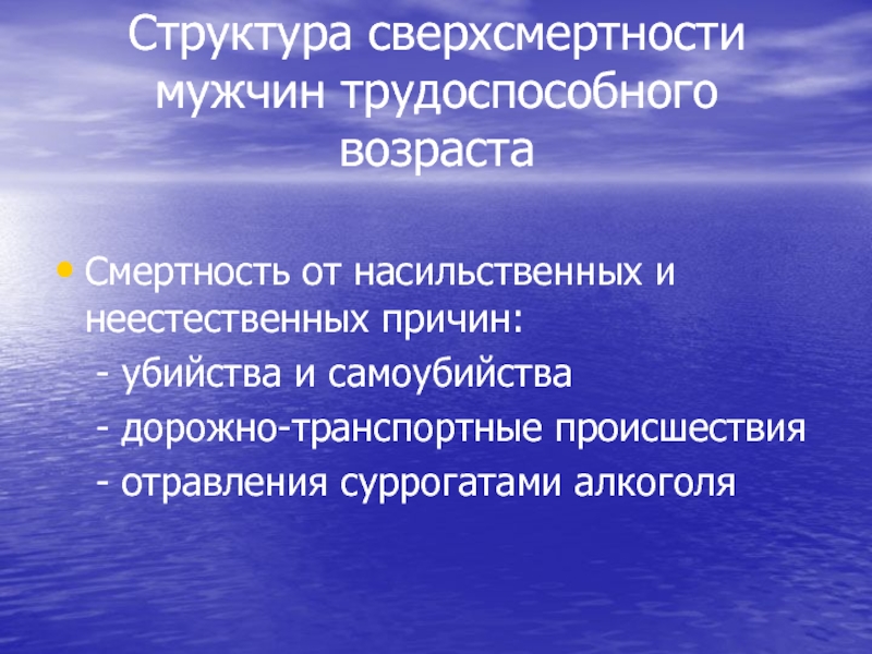 Слайд 43Структура сверхсмертности мужчин трудоспособного возраста