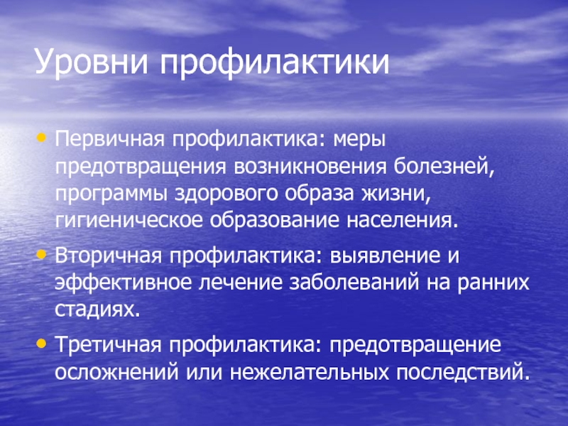 Третичная профилактика: предотвращение осложнений или нежелательных последствий.