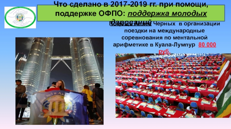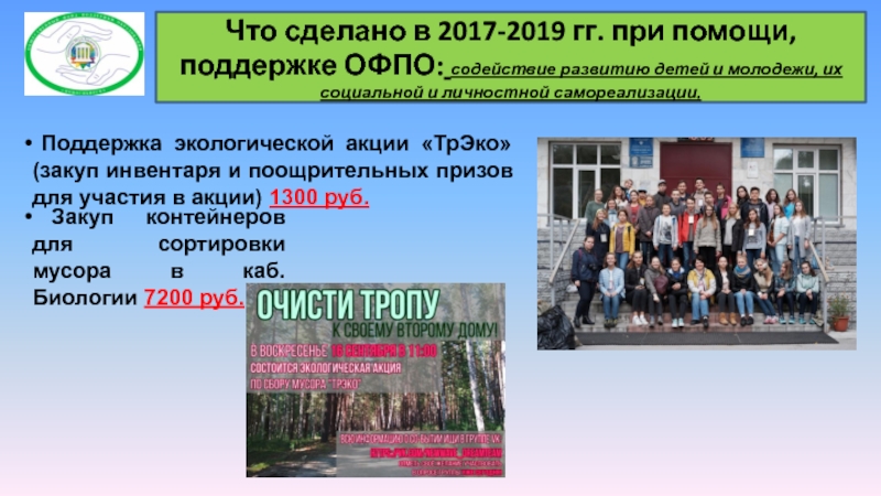 Слайд 15Что сделано в 2017-2019 гг. при помощи, поддержке ОФПО: содействие