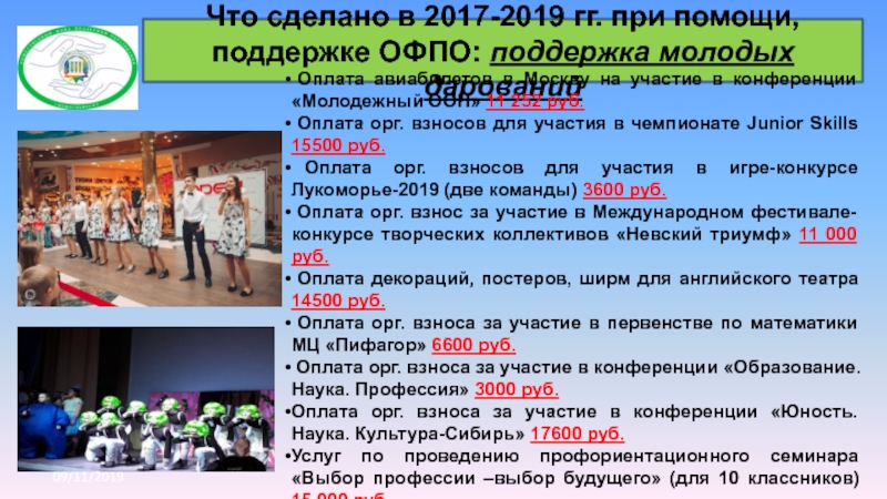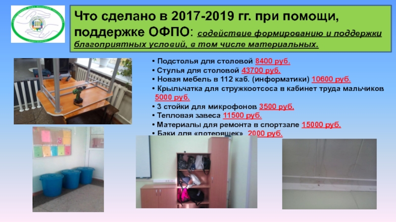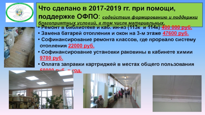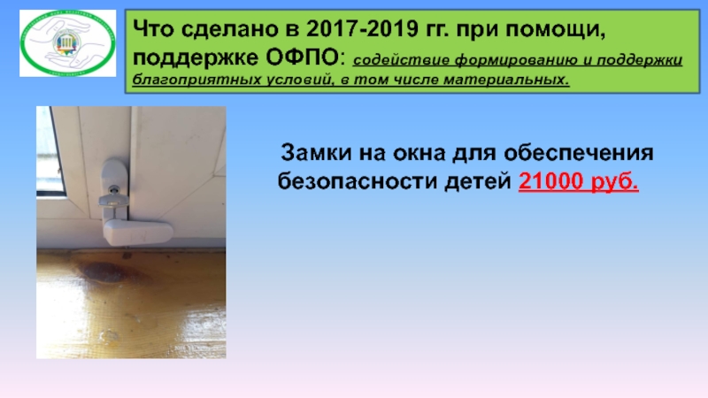 Слайд 11Что сделано в 2017-2019 гг. при помощи, поддержке ОФПО: содействие