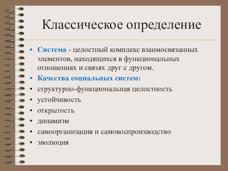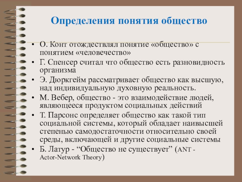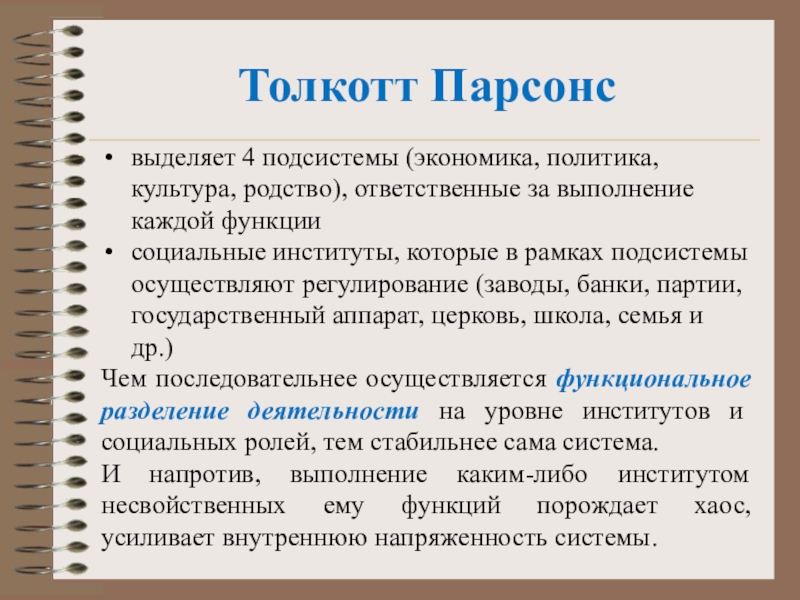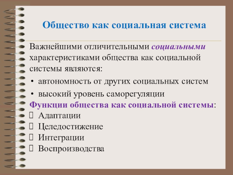 Т. Парсонс определяет общество как такой тип социальной системы, который обладает наивысшей степенью самодостаточности относительно своей среды, включающей и другие социальные системы