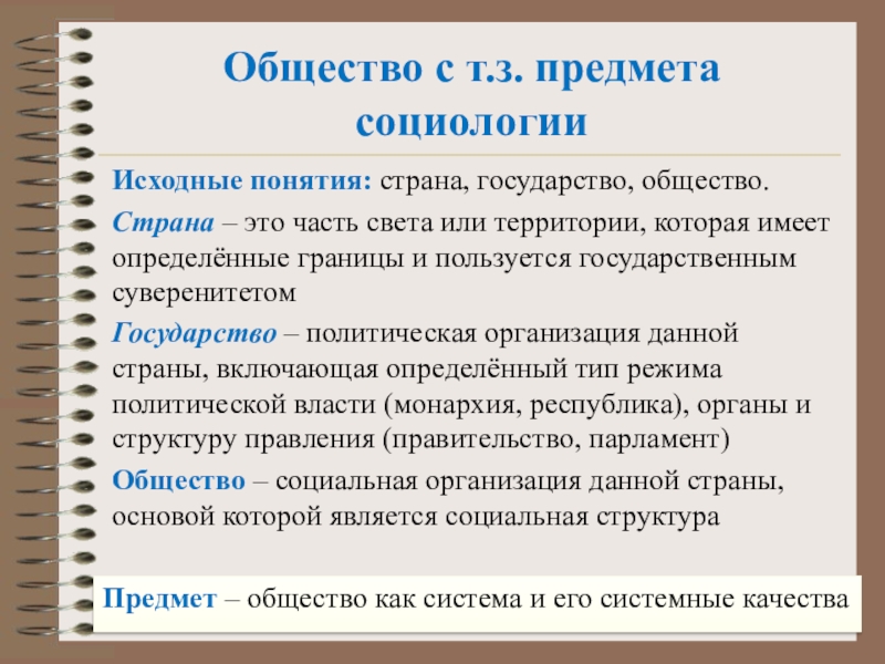 Общество – социальная организация данной страны, основой которой является социальная структура