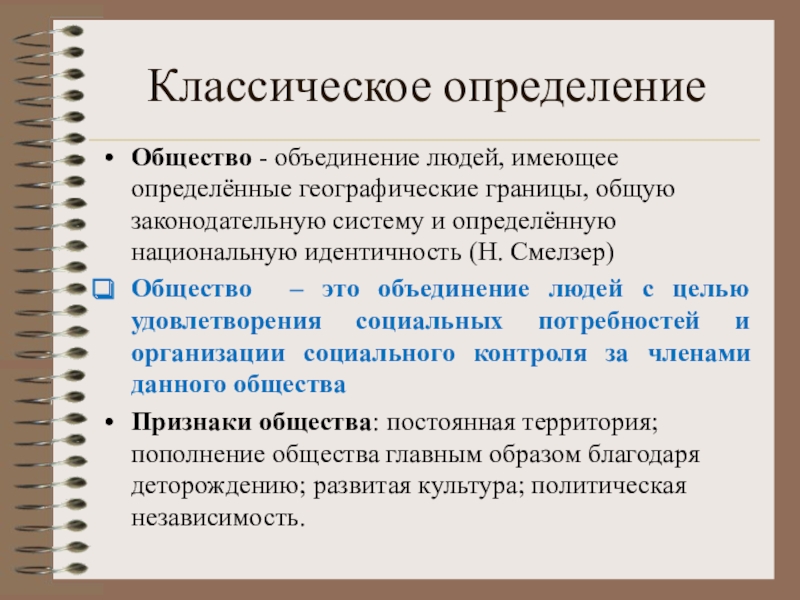 Общество - объединение людей, имеющее определённые географические границы, общую