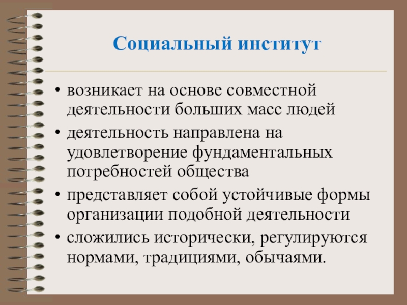 это объединение людей с целью удовлетворения социальных потребностей и организации социального контроля за членами данного общества