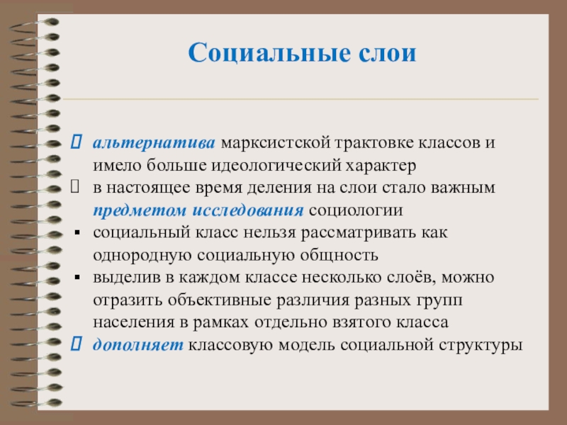 выделив в каждом классе несколько слоёв, можно отразить объективные различия разных групп населения в рамках отдельно взятого класса