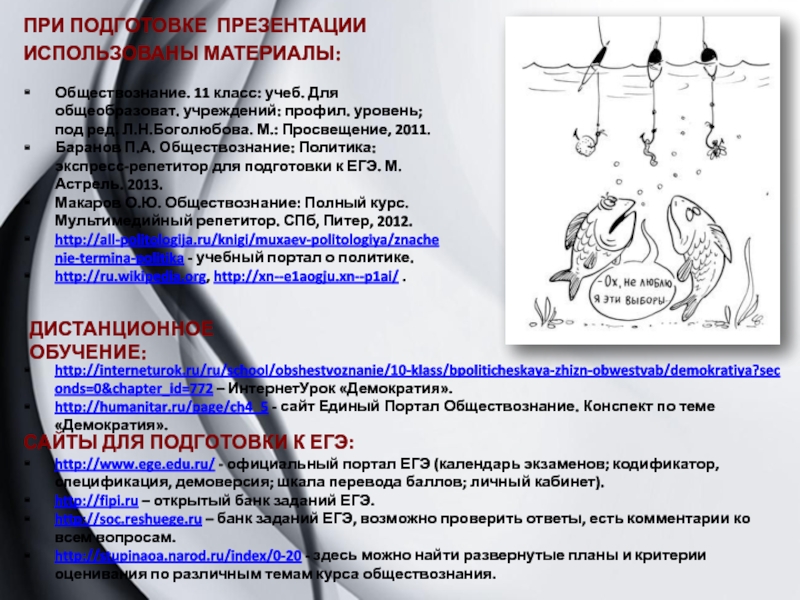 http://interneturok.ru/ru/school/obshestvoznanie/10-klass/bpoliticheskaya-zhizn-obwestvab/demokratiya?seconds=0&chapter_id=772 – ИнтернетУрок «Демократия».