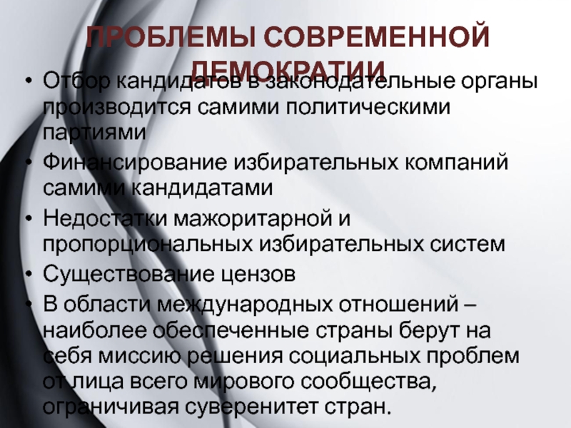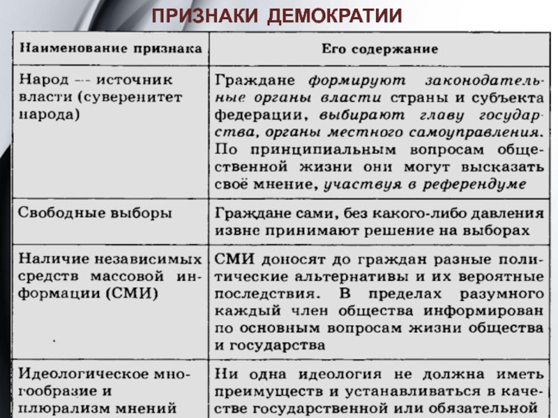 УСЛОВИЯ СУЩЕСТВОВАНИЯ ДЕМОКРАТИИ: