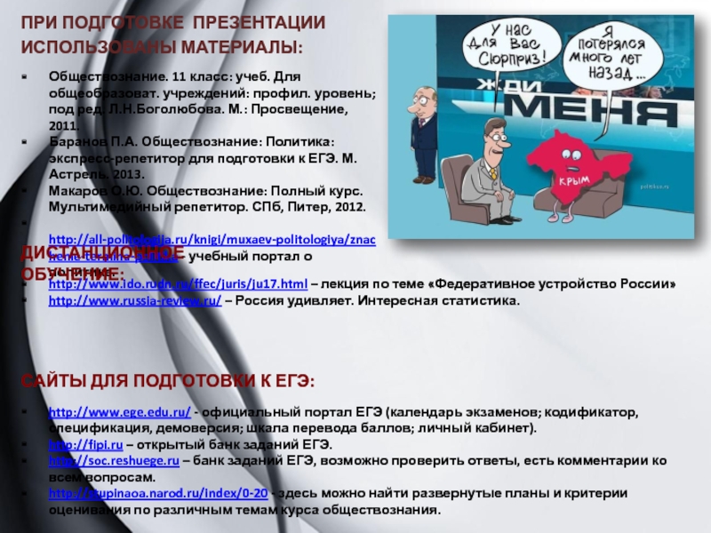 http://soc.reshuege.ru – банк заданий ЕГЭ, возможно проверить ответы, есть комментарии ко всем вопросам.