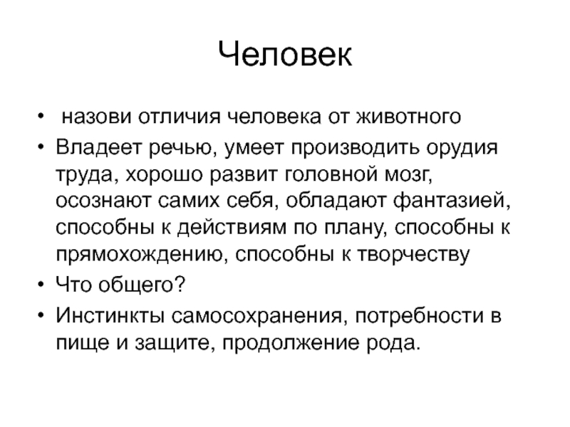 фантазией, способны к действиям по плану, способны к прямохождению, способны к творчеству