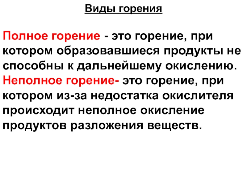 Полное горение - это горение, при котором образовавшиеся продукты не