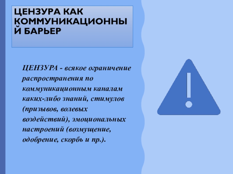 Слайд 41ЦЕНЗУРА КАК КОММУНИКАЦИОННЫЙ БАРЬЕР