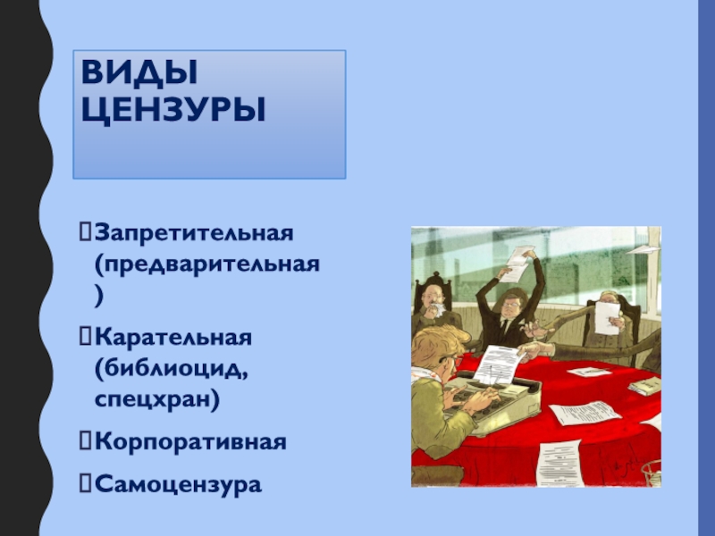 Слайд 44ВИДЫ ЦЕНЗУРЫ