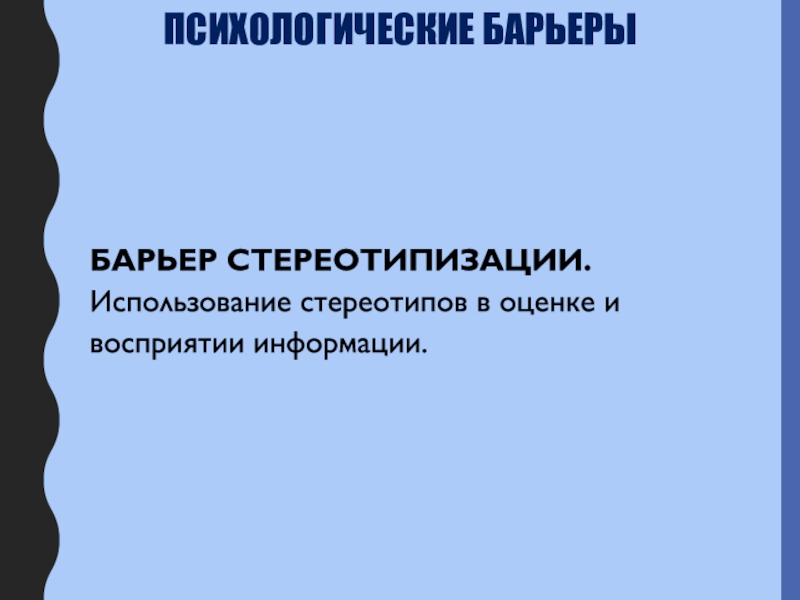 БАРЬЕР СТЕРЕОТИПИЗАЦИИ. Использование стереотипов в оценке и восприятии информации.
