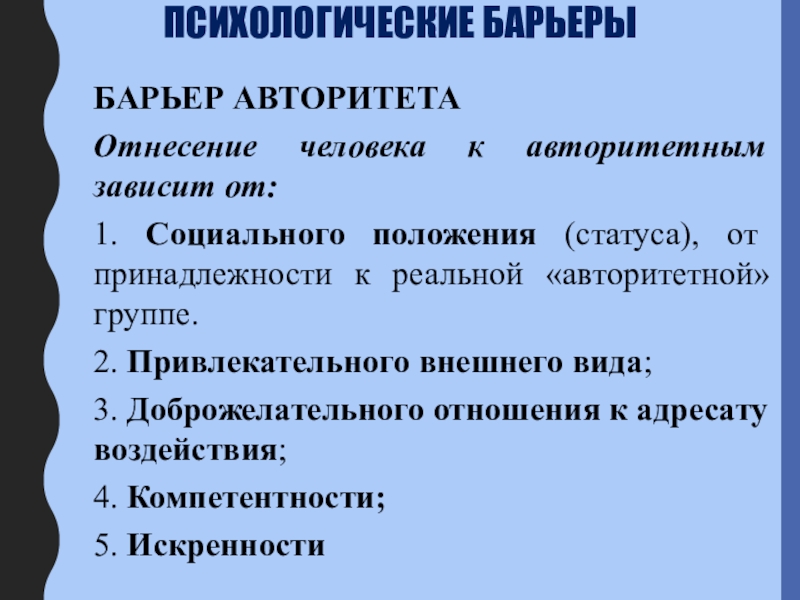 Слайд 55ПСИХОЛОГИЧЕСКИЕ БАРЬЕРЫ