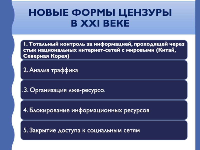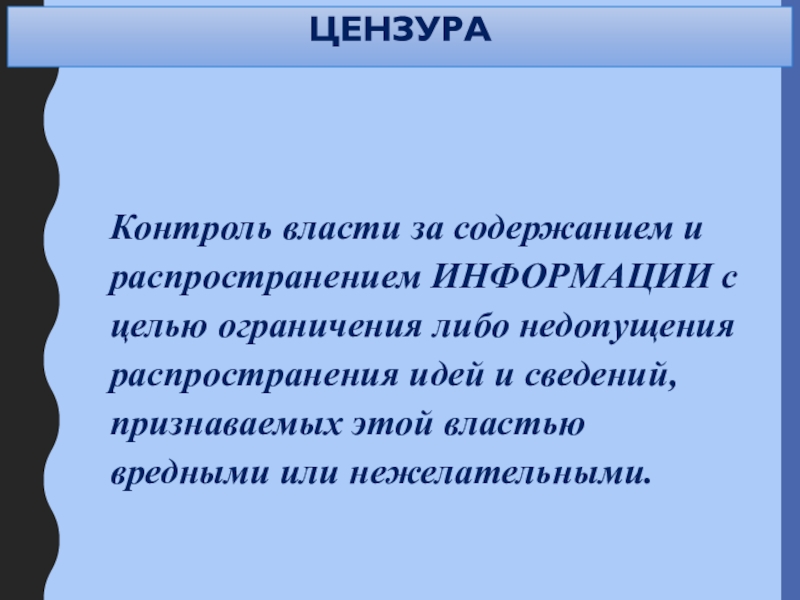 Контроль власти за содержанием и распространением ИНФОРМАЦИИ с целью ограничения